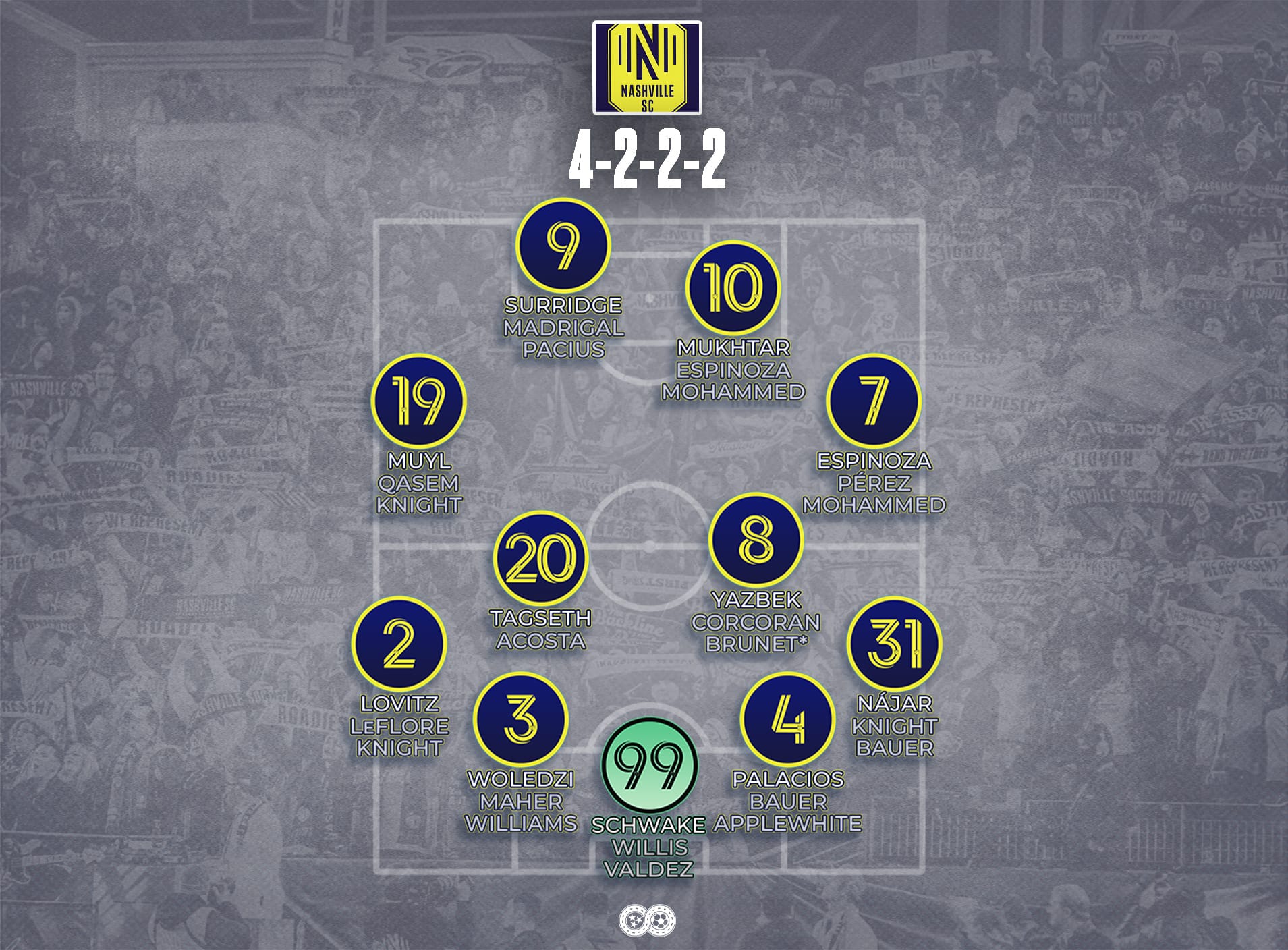 Last season, in his first full year as head coach, Callaghan primarily set up in a 4-2-2-2 formation. While Nashville's approach and principles of play will stay the same, the shape they use this year will be more flexible. Callaghan has said he wants the team to be able to adapt to different looks, both from the start and during the game, and with several new additions to the squad, there are plenty of options.