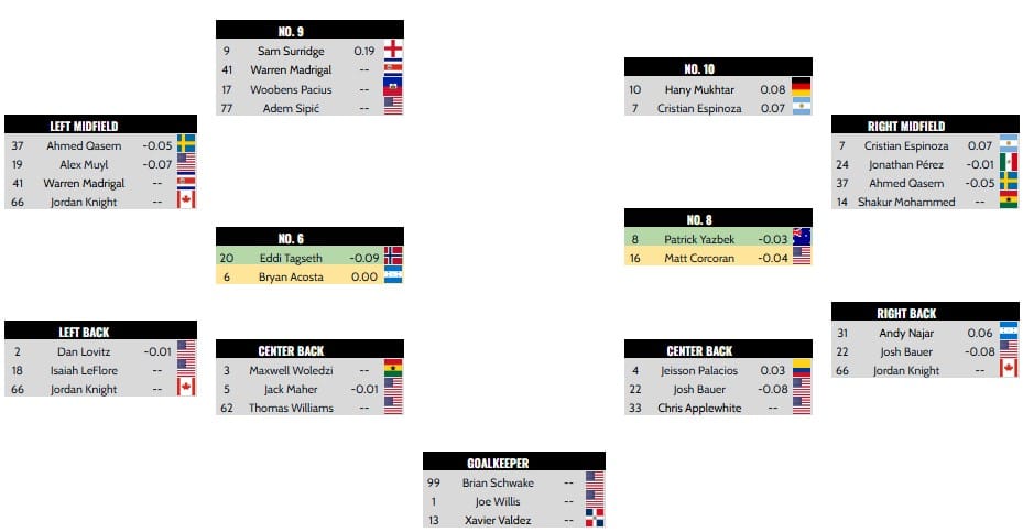 Nashville's midfield is still the most glaring hole in the roster. Currently, there are four midfielders on the roster — Eddi Tagseth, Patrick Yazbek, Matthew Corcoran, and Bryan Acosta. Isaiah Jones has been loaned out to Chattanooga FC for the season, but he didn't play a minute last year, so his departure makes little impact.