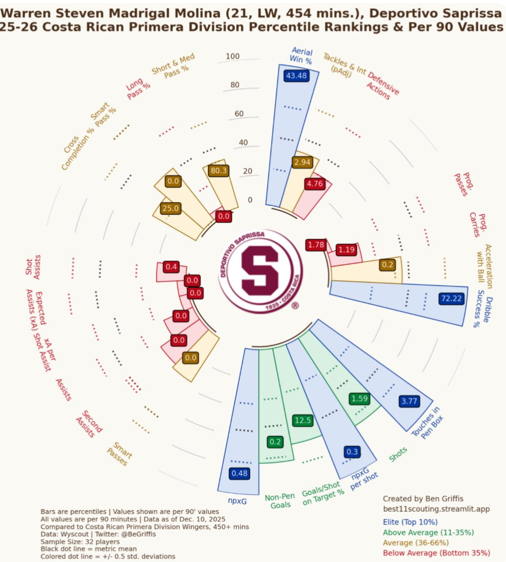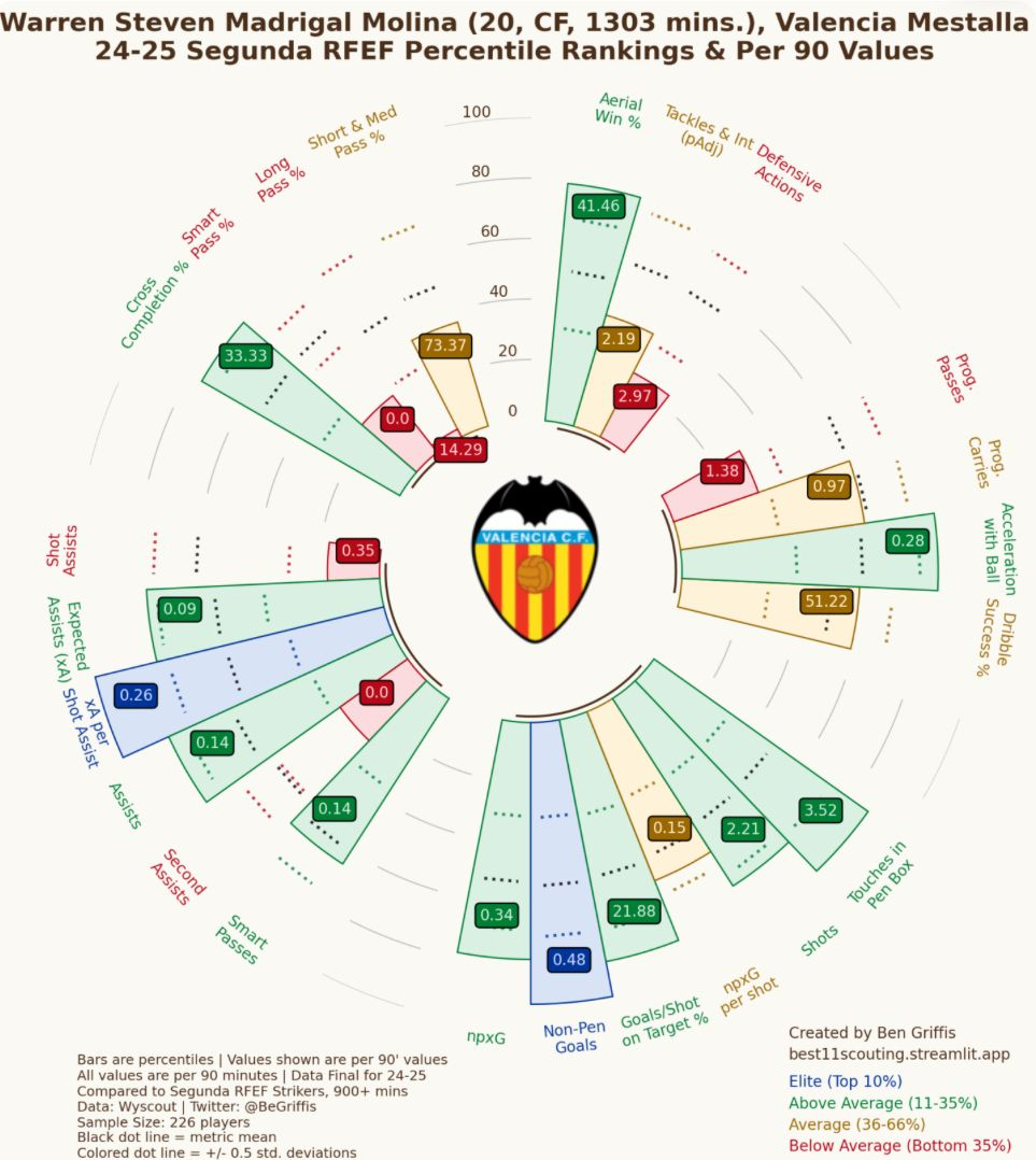 At a glance, Madrigal’s radial charts are impressive. He’s an efficient player who wins duels and scores goals. But once you start to nitpick, a few red flags begin to emerge.