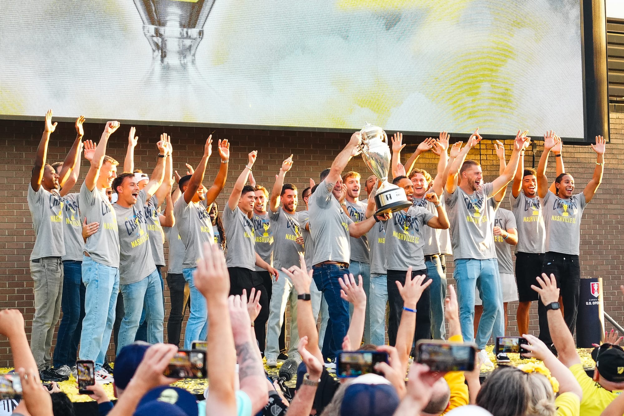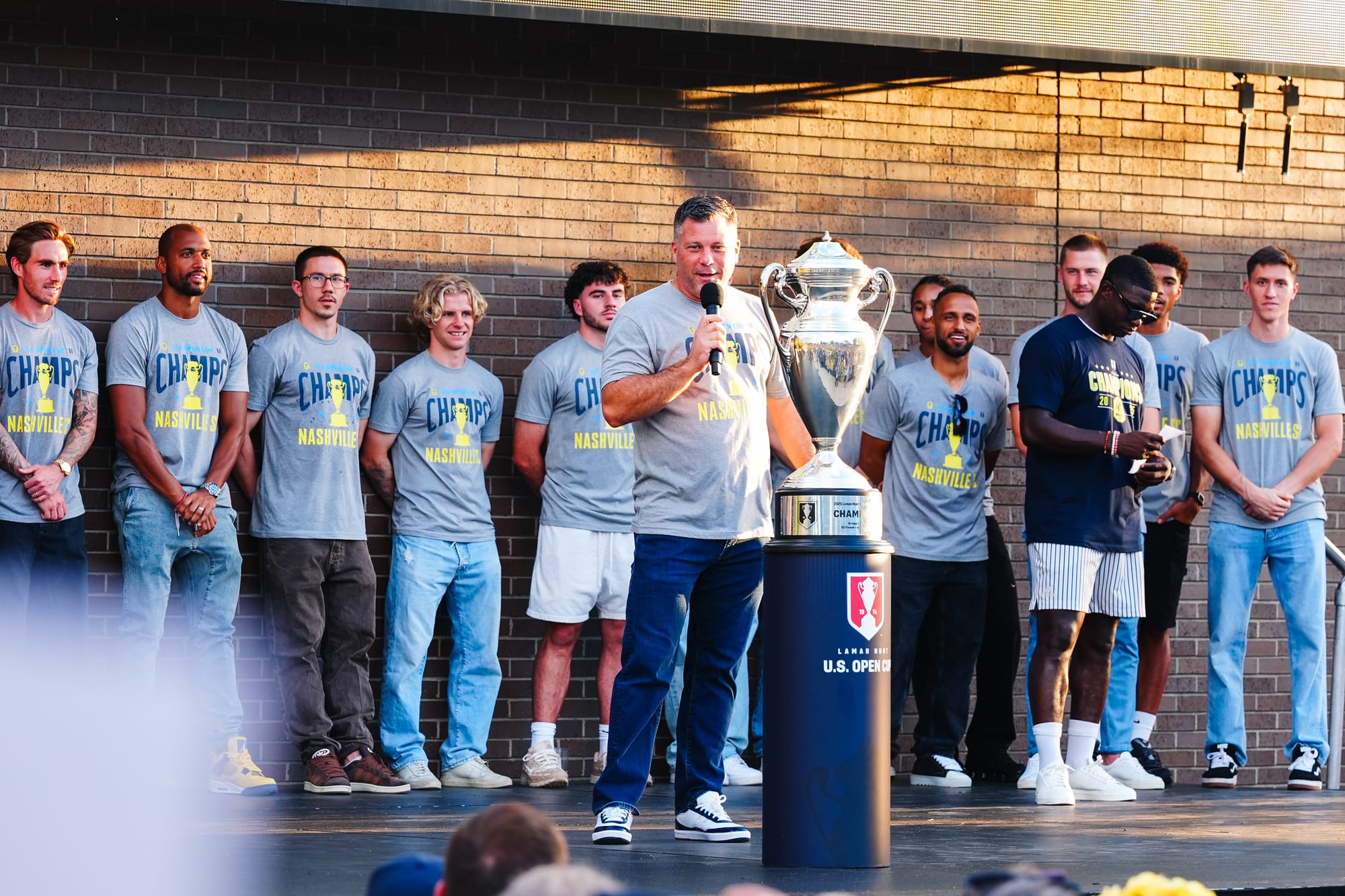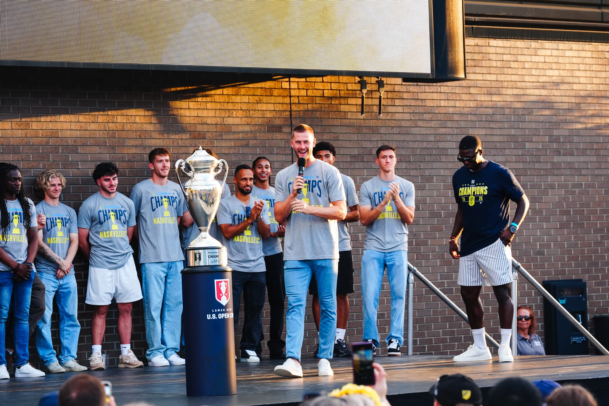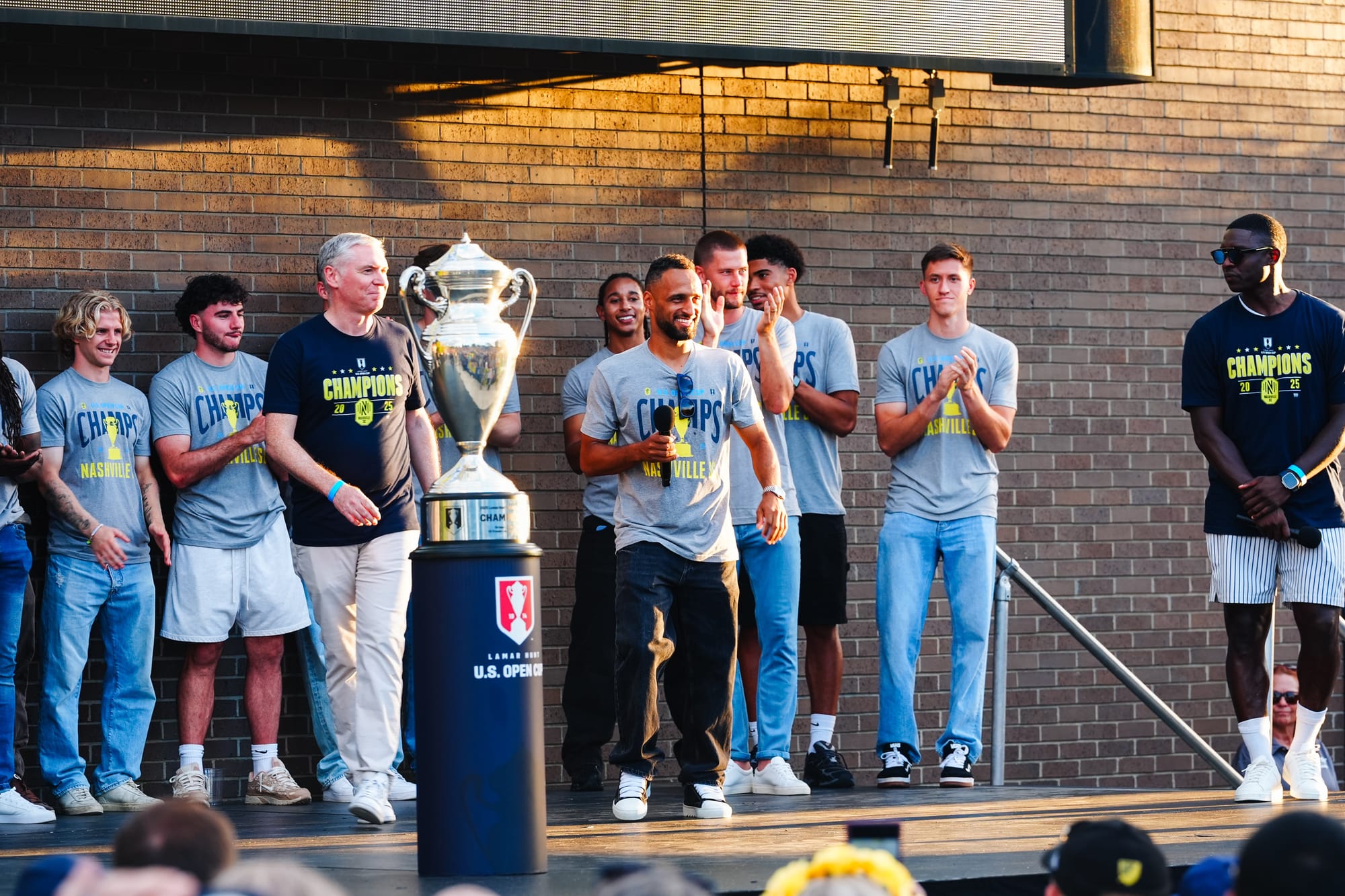 NASHVILLE, TN – On Sunday, Nashville SC brought the US Open Cup to Geodis Park in a special celebration event. Featuring players, coaches, and staff, the trophy was presented at the stadium's plaza in front of a boisterous crowd of nearly 4,000.