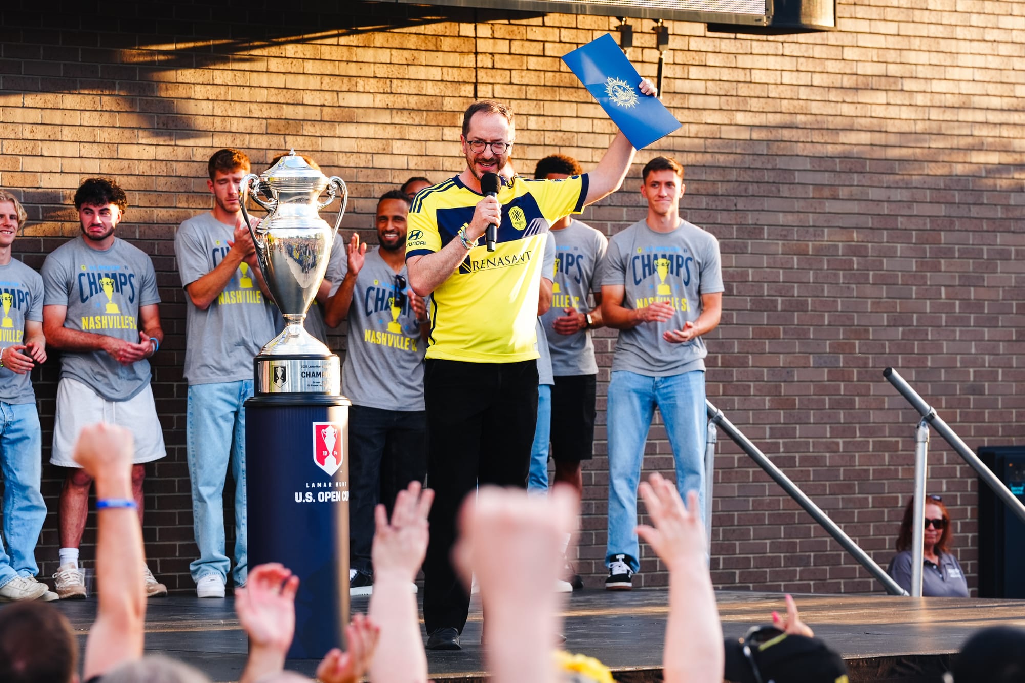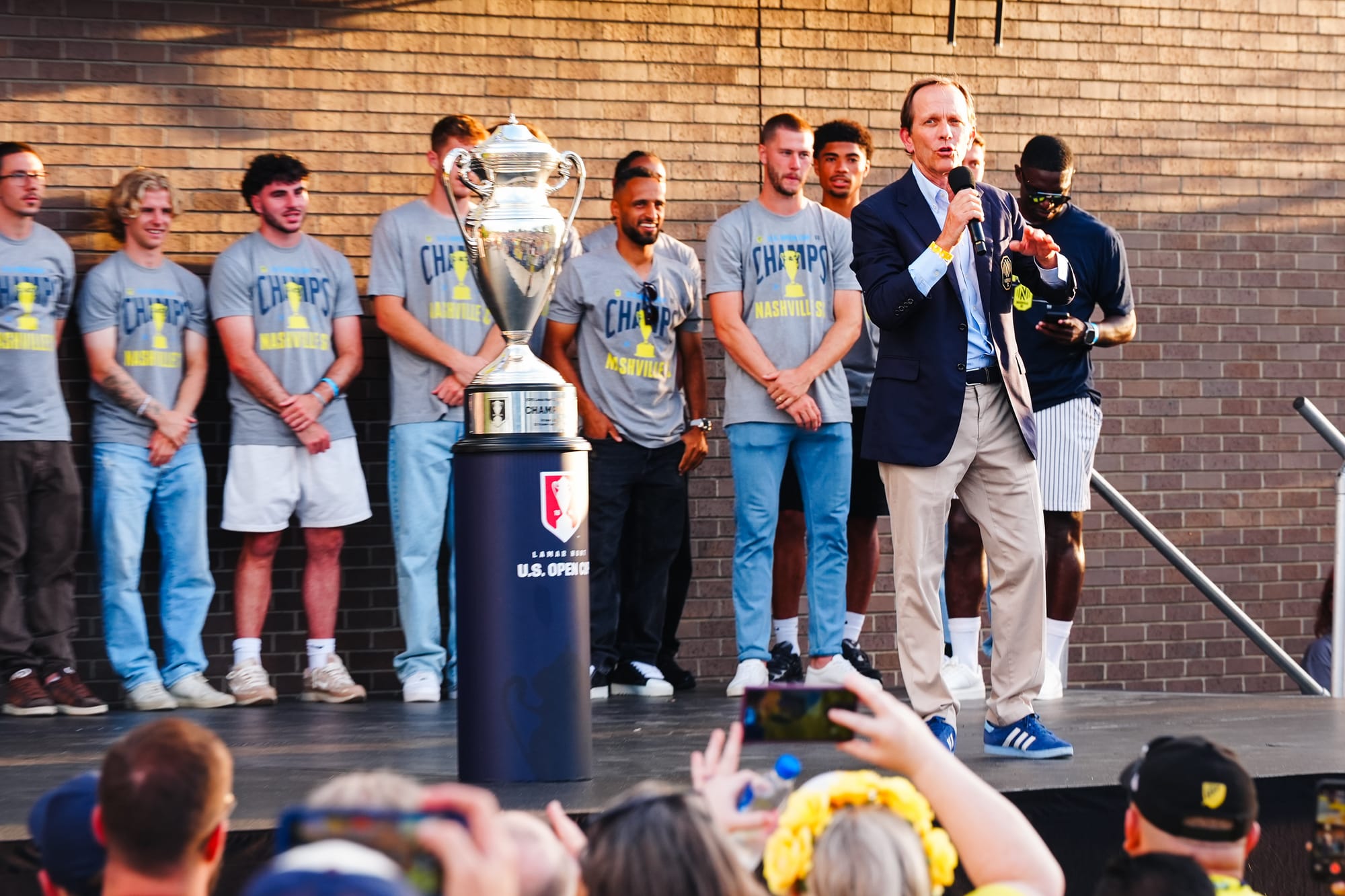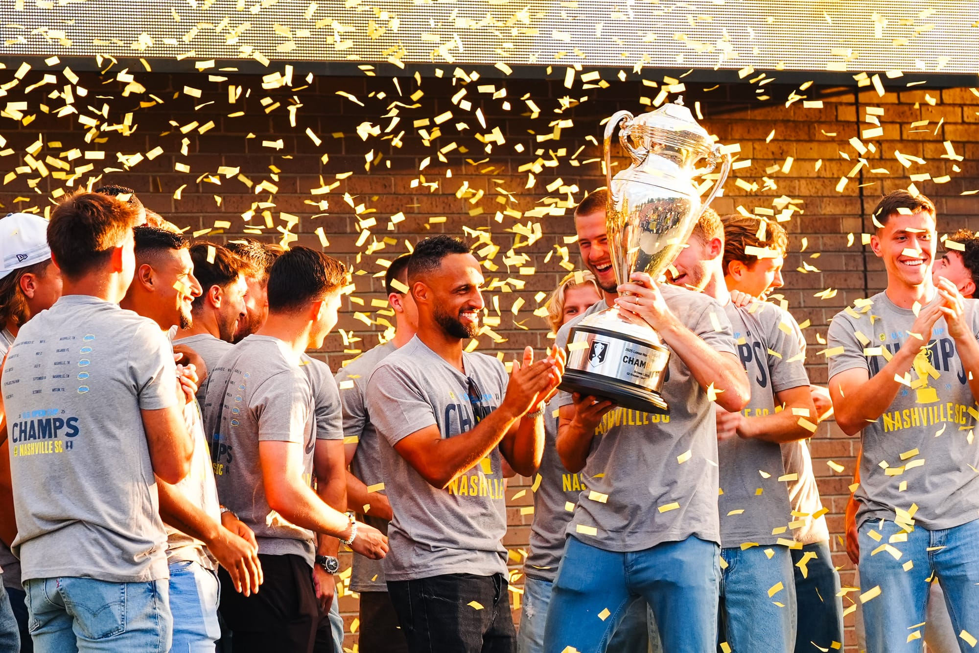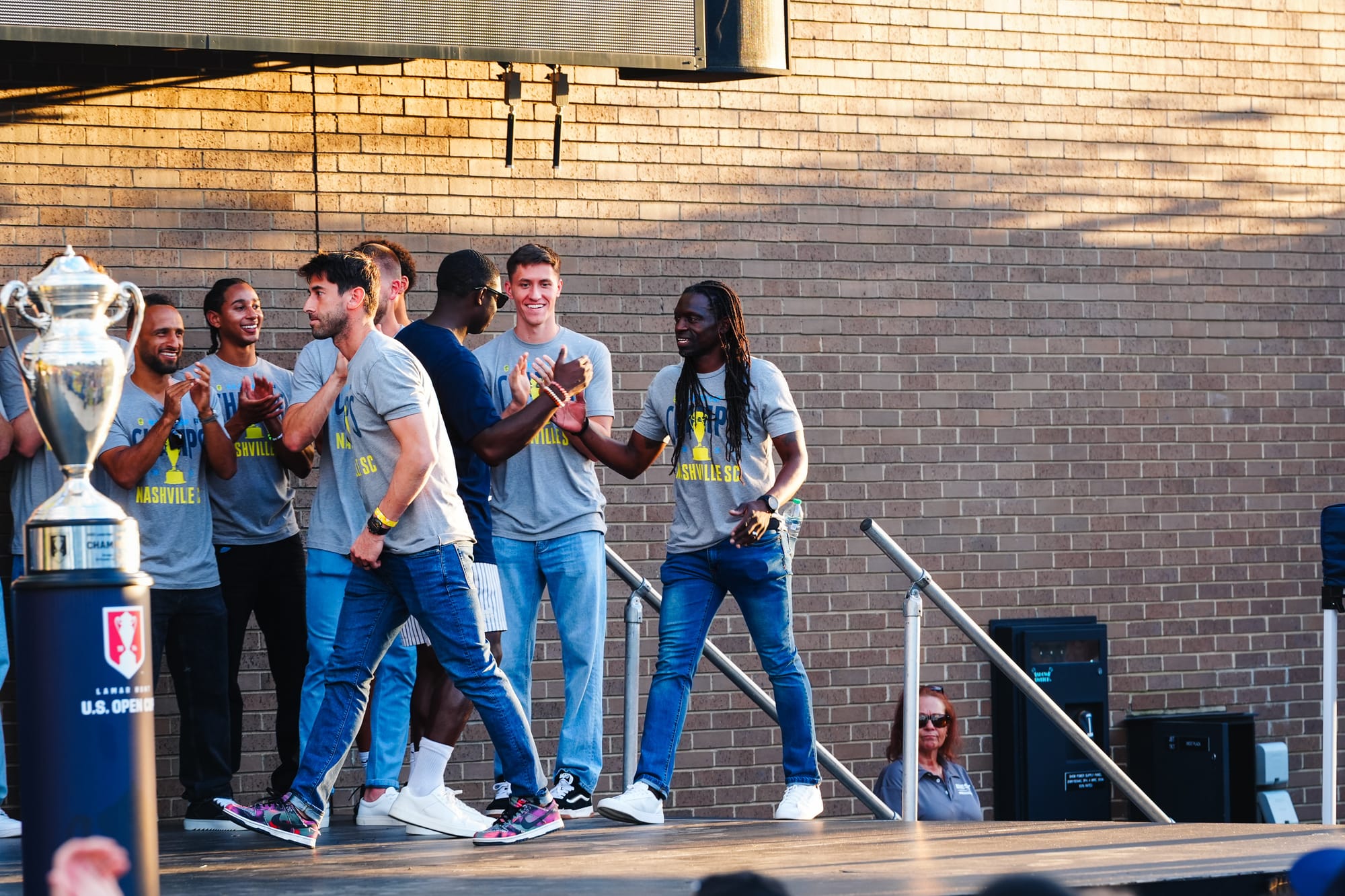 NASHVILLE, TN – On Sunday, Nashville SC brought the US Open Cup to Geodis Park in a special celebration event. Featuring players, coaches, and staff, the trophy was presented at the stadium's plaza in front of a boisterous crowd of nearly 4,000.