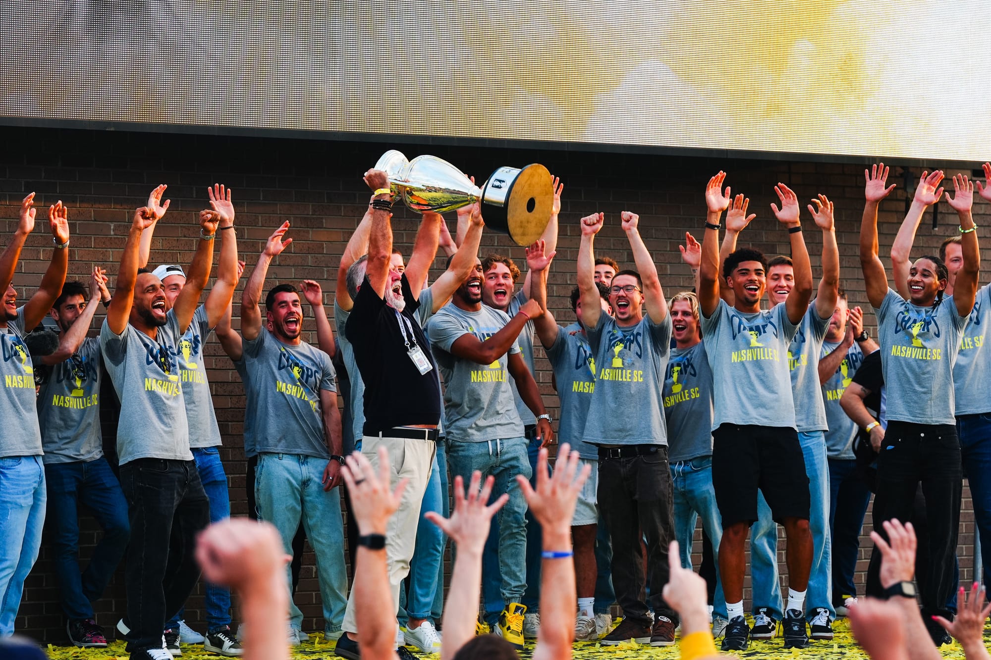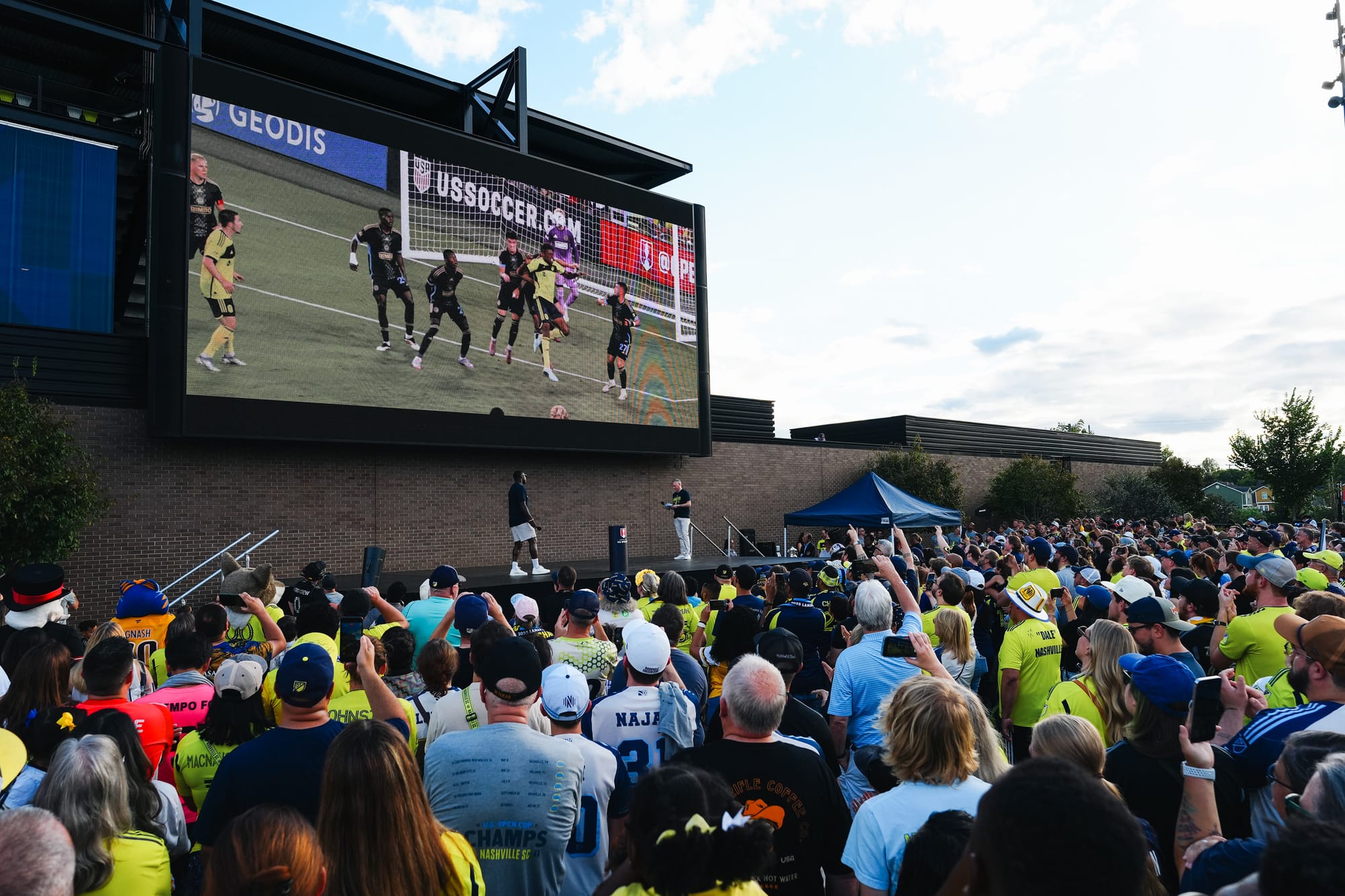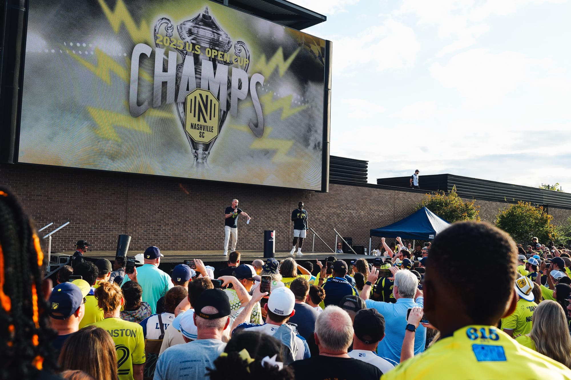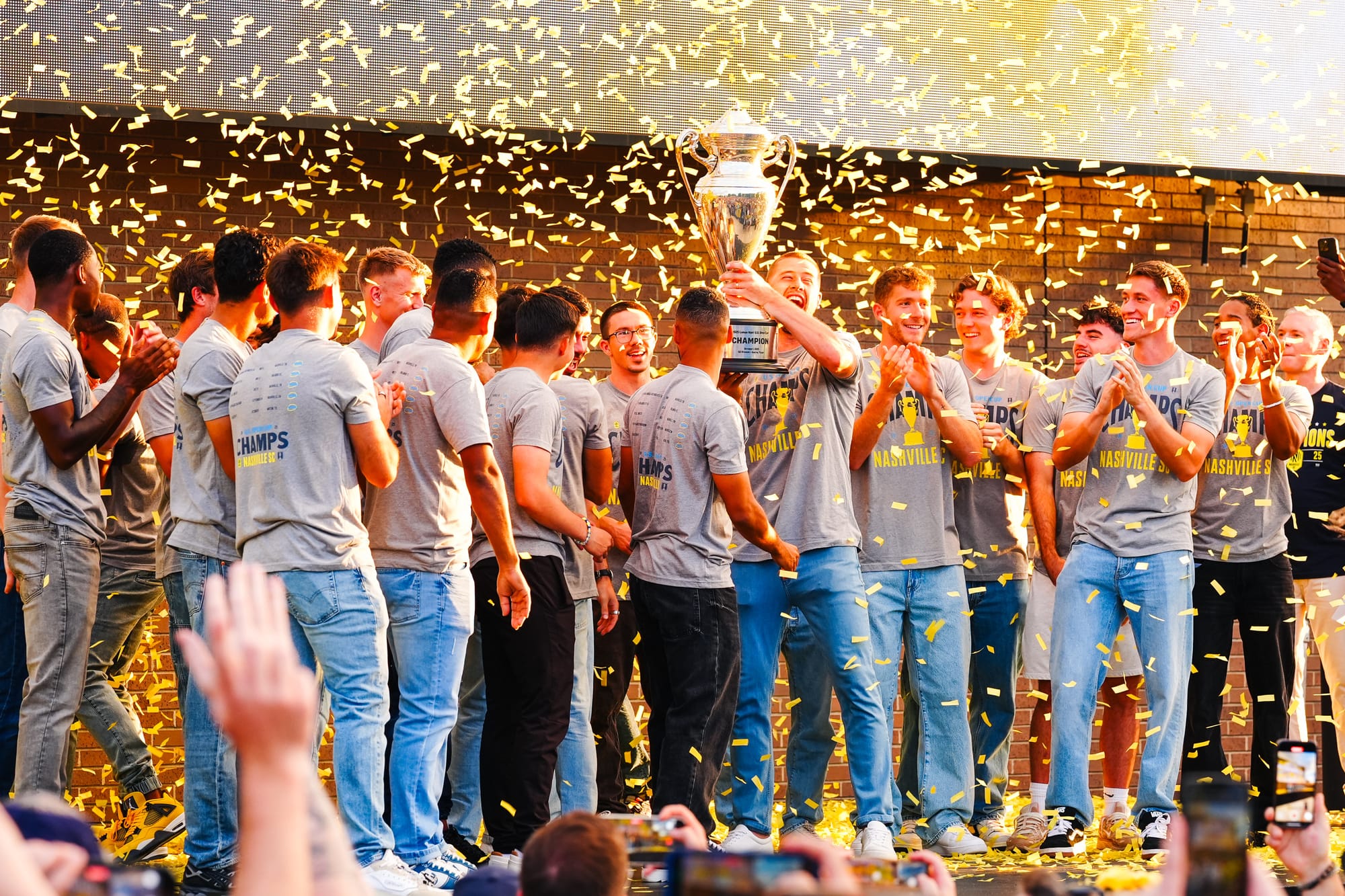 NASHVILLE, TN – On Sunday, Nashville SC brought the US Open Cup to Geodis Park in a special celebration event. Featuring players, coaches, and staff, the trophy was presented at the stadium's plaza in front of a boisterous crowd of nearly 4,000.