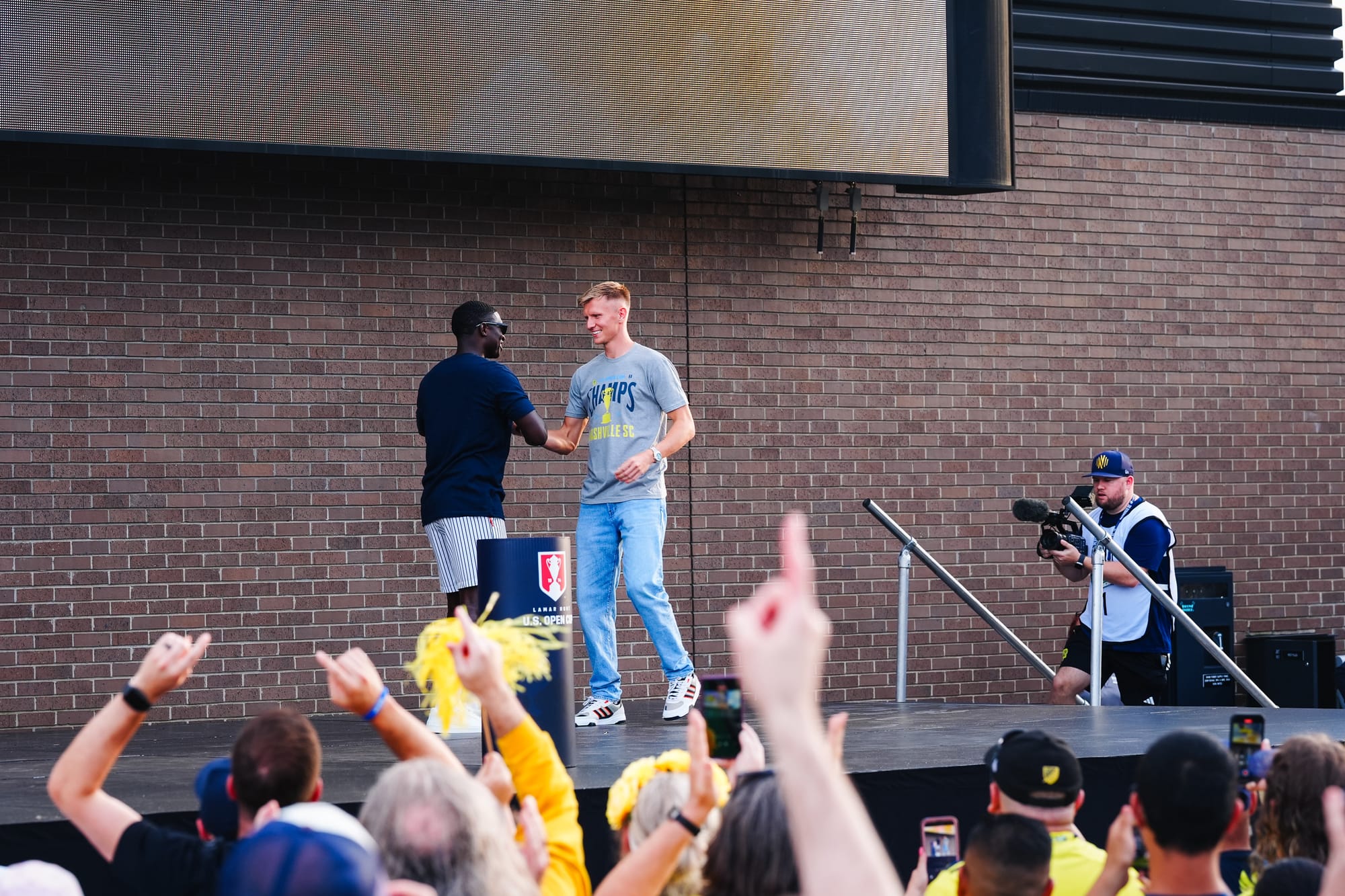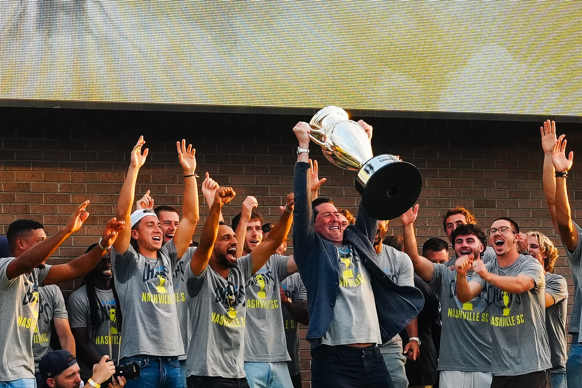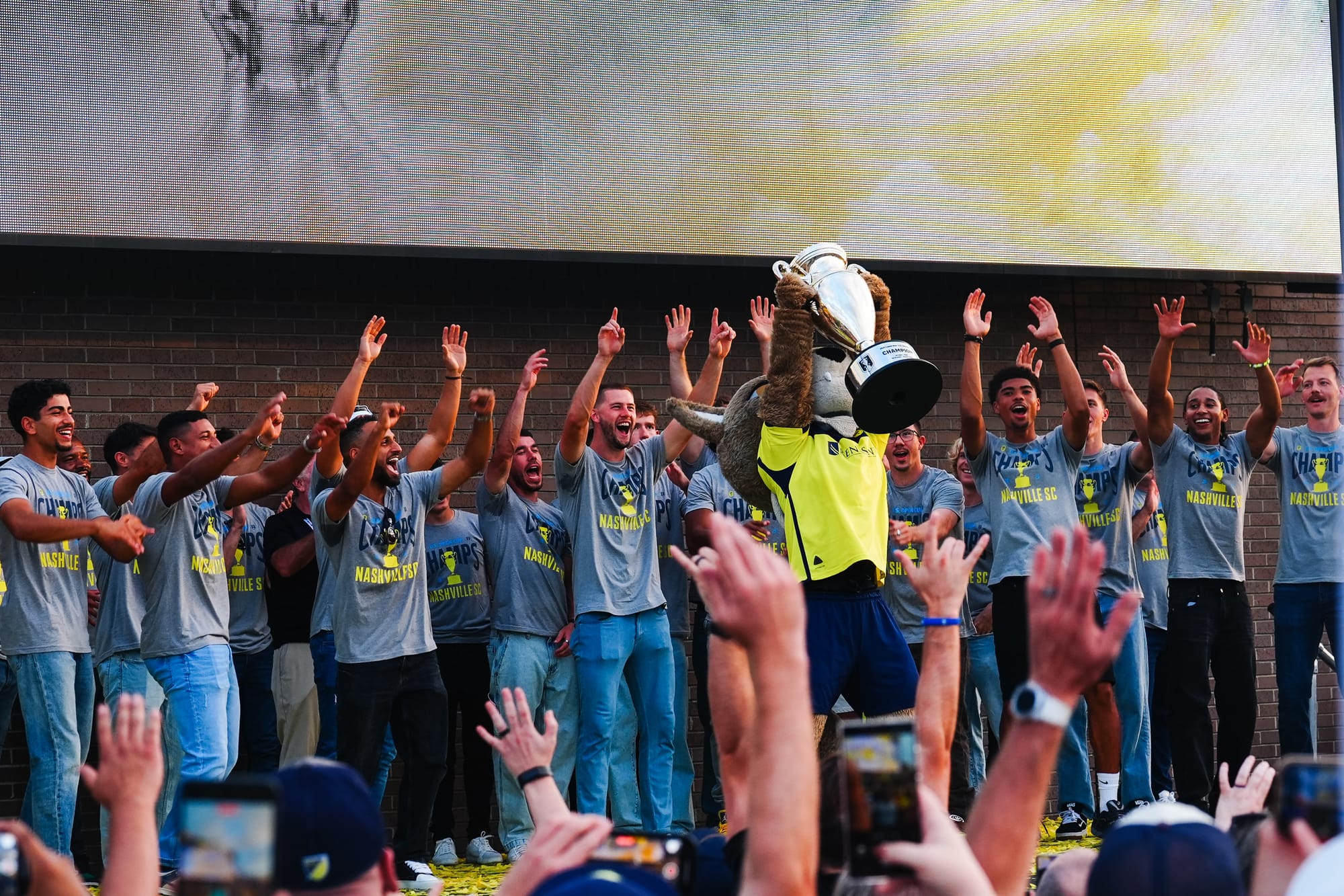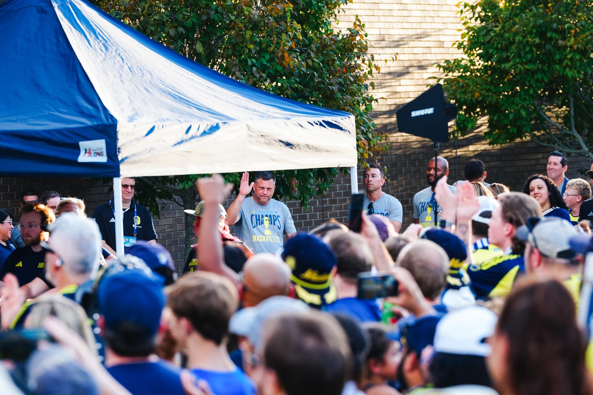 NASHVILLE, TN – On Sunday, Nashville SC brought the US Open Cup to Geodis Park in a special celebration event. Featuring players, coaches, and staff, the trophy was presented at the stadium's plaza in front of a boisterous crowd of nearly 4,000.