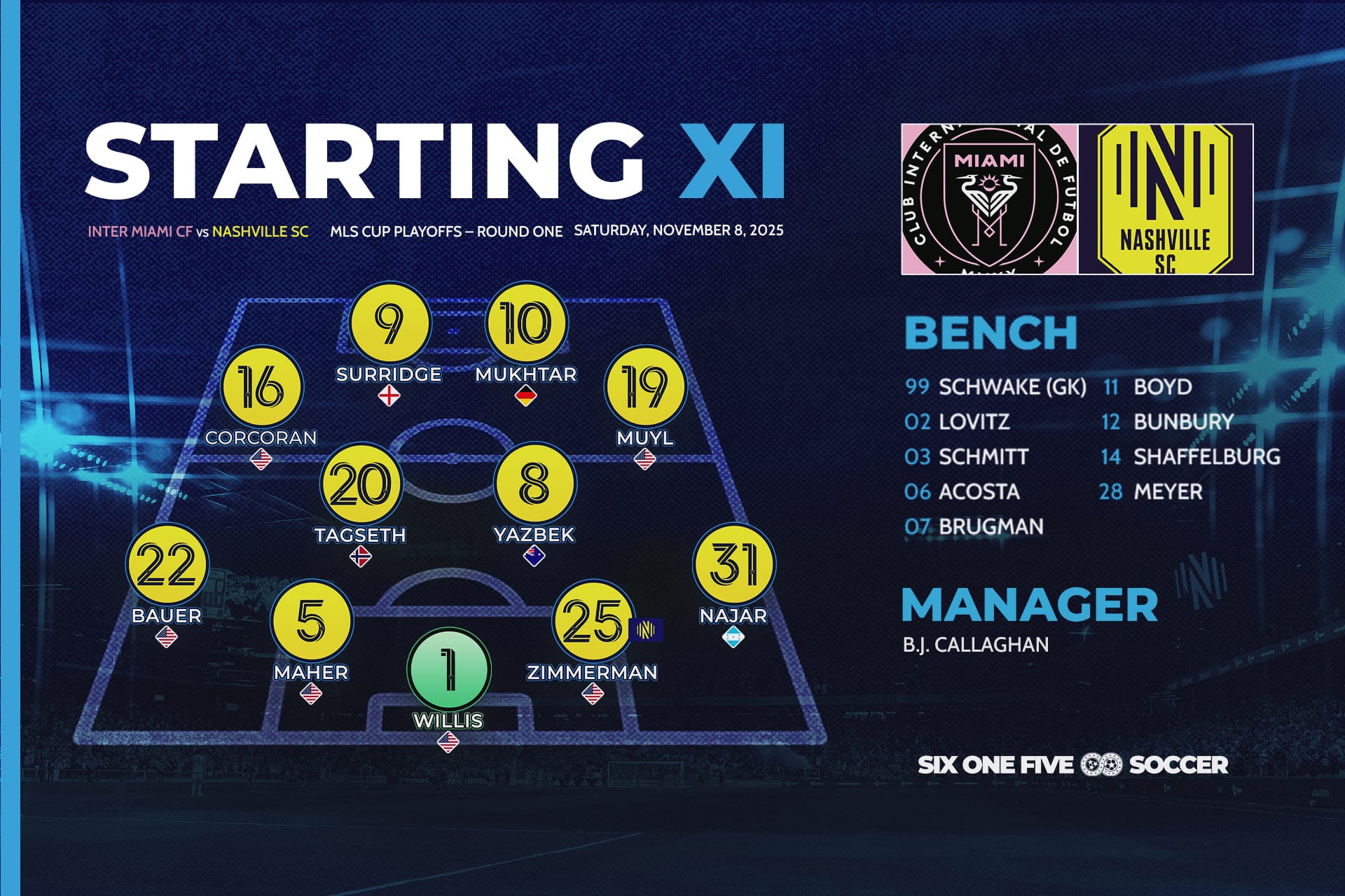 Miami head to FC Cincinnati for the Eastern Conference semifinals. Nashville return home to recover and get ready for the 2026 season, with less than 90 days to go before they kick off their 2026 Concacaf Champions Cup campaign.