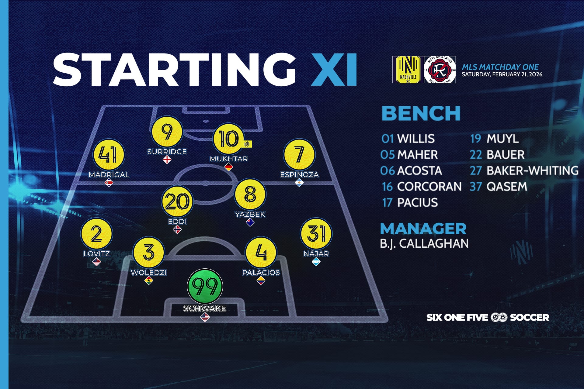 NASHVILLE, TN – Nashville SC made the perfect start to their MLS season on Saturday night, breezing past an outgunned New England Revolution in a heavily one-sided performance.